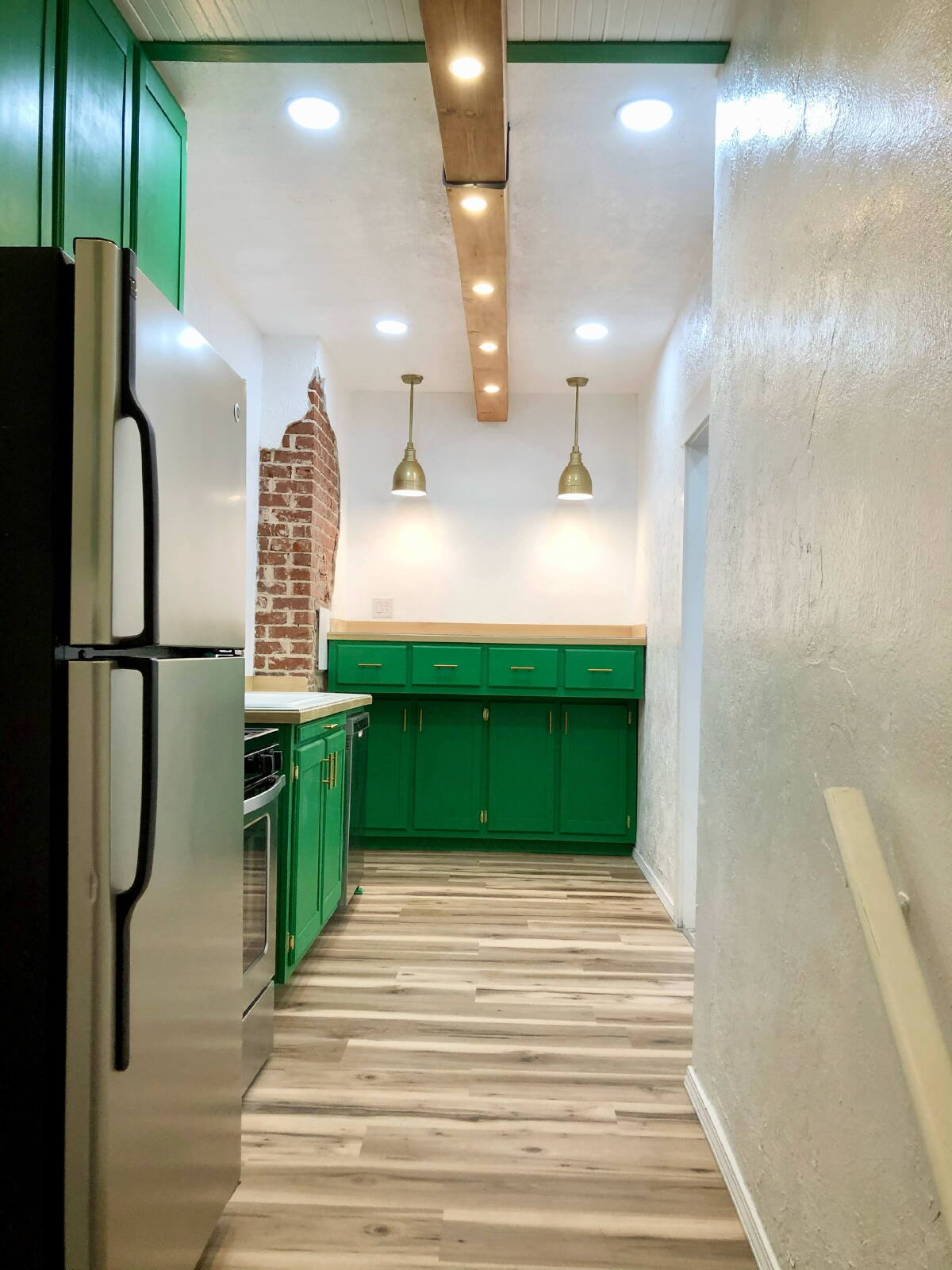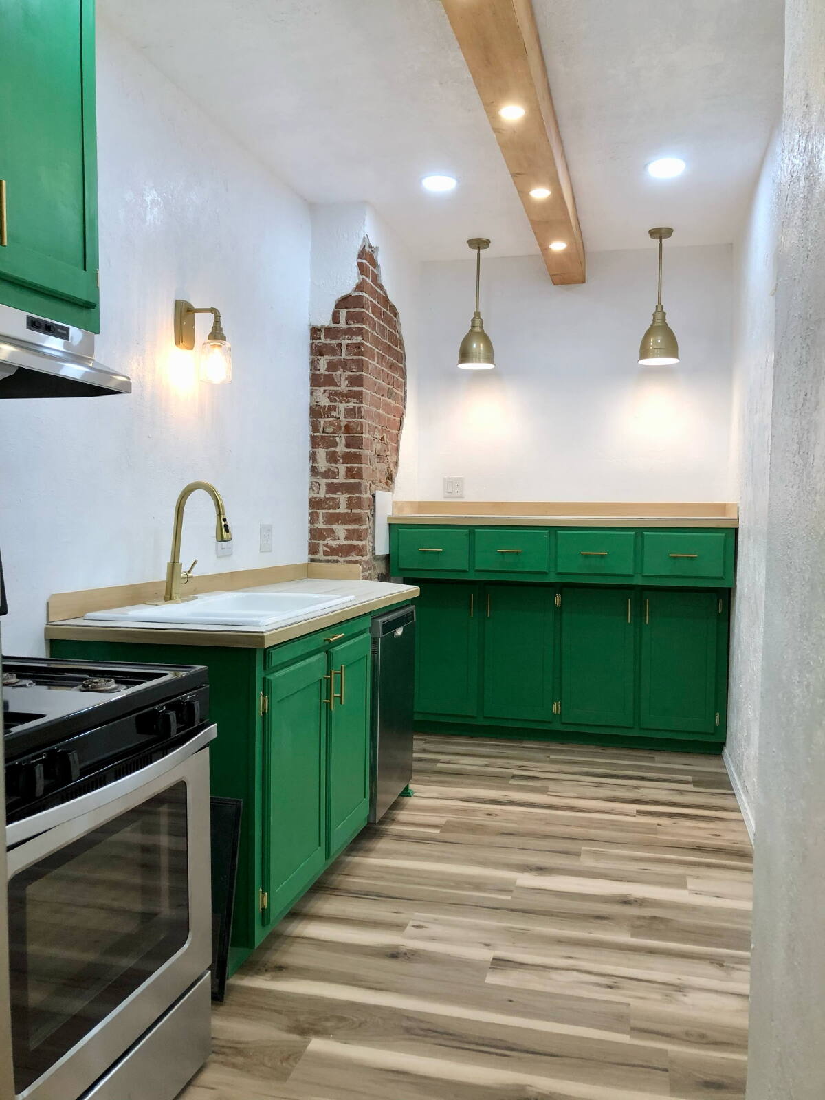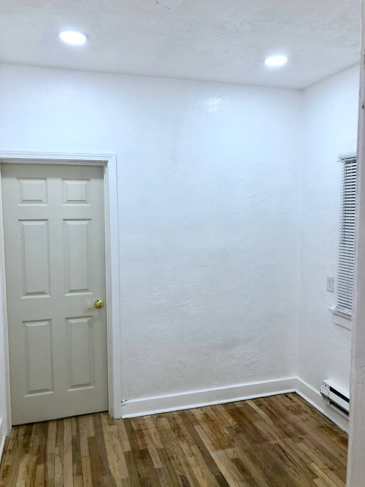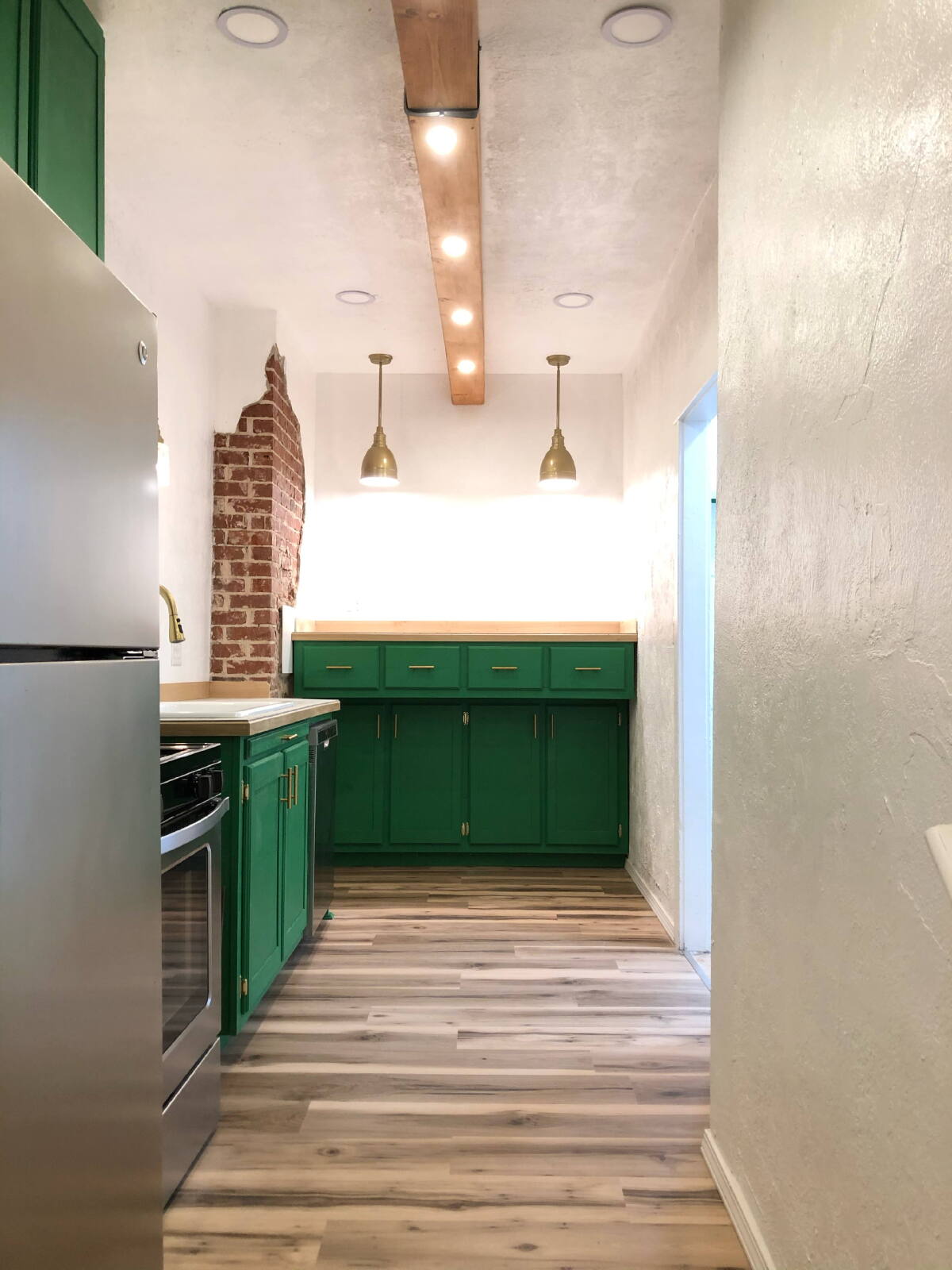 This 1 bedroom 1 bathroom apartment is newly remodeled. It has unique details such as a barn door, custom kitchen cabinets, and a decorative beam along with a custom-built vanity in the bathroom. The original oak floors and the extra tall ceiling give the apartment a spacious feel, as does the abundant natural light from the windows!